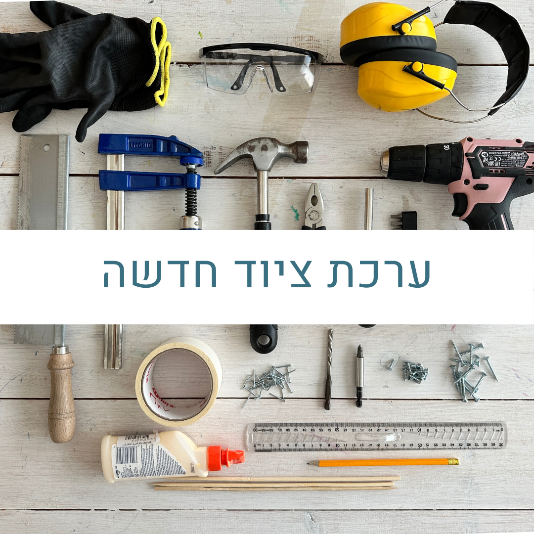 משקפי מגן, כפפות עבודה, אטמי אוזניים, מסור יד , קליבה, פטיש, ידית עבודה, ביטים, מקחים, דבק נגרים, ברגים, נייר דבק, סרגל